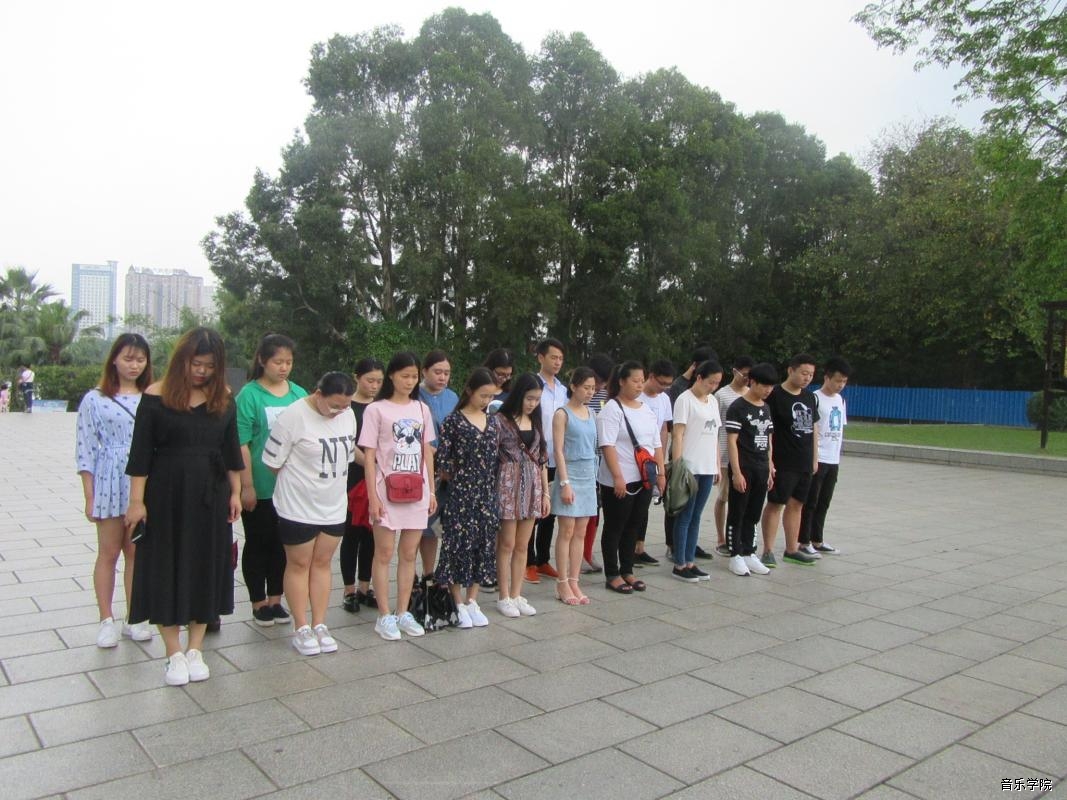 5月7日,2015级音乐学班全体同学怀着对革命先烈们的崇高敬意前往南湖韦拔群、李明瑞纪念碑开展了学习教育活动,到达纪念碑后,在团支书孙晨曦同学的组织下,祭奠活动正式开始。全体同学向革命先烈韦拔群和李明瑞同志默哀三分钟,表达了对先烈们的深切哀悼和敬仰之情。随后大家对两位革命先烈的英雄事迹进行了深入了解,并庄重承诺:坚定理想信念,努力学习,听党话,跟党走,为祖国的建设和发展奉献自己的青春与热血,争做一名合格团员。