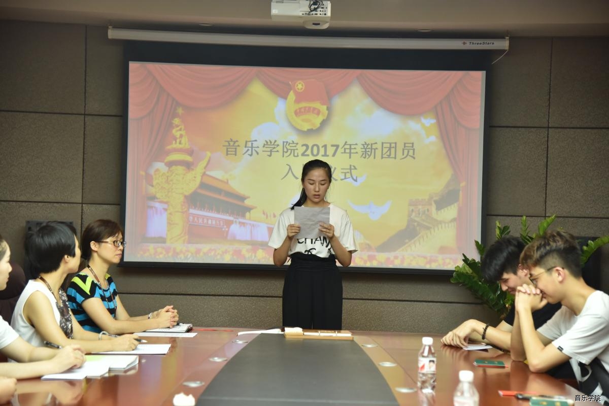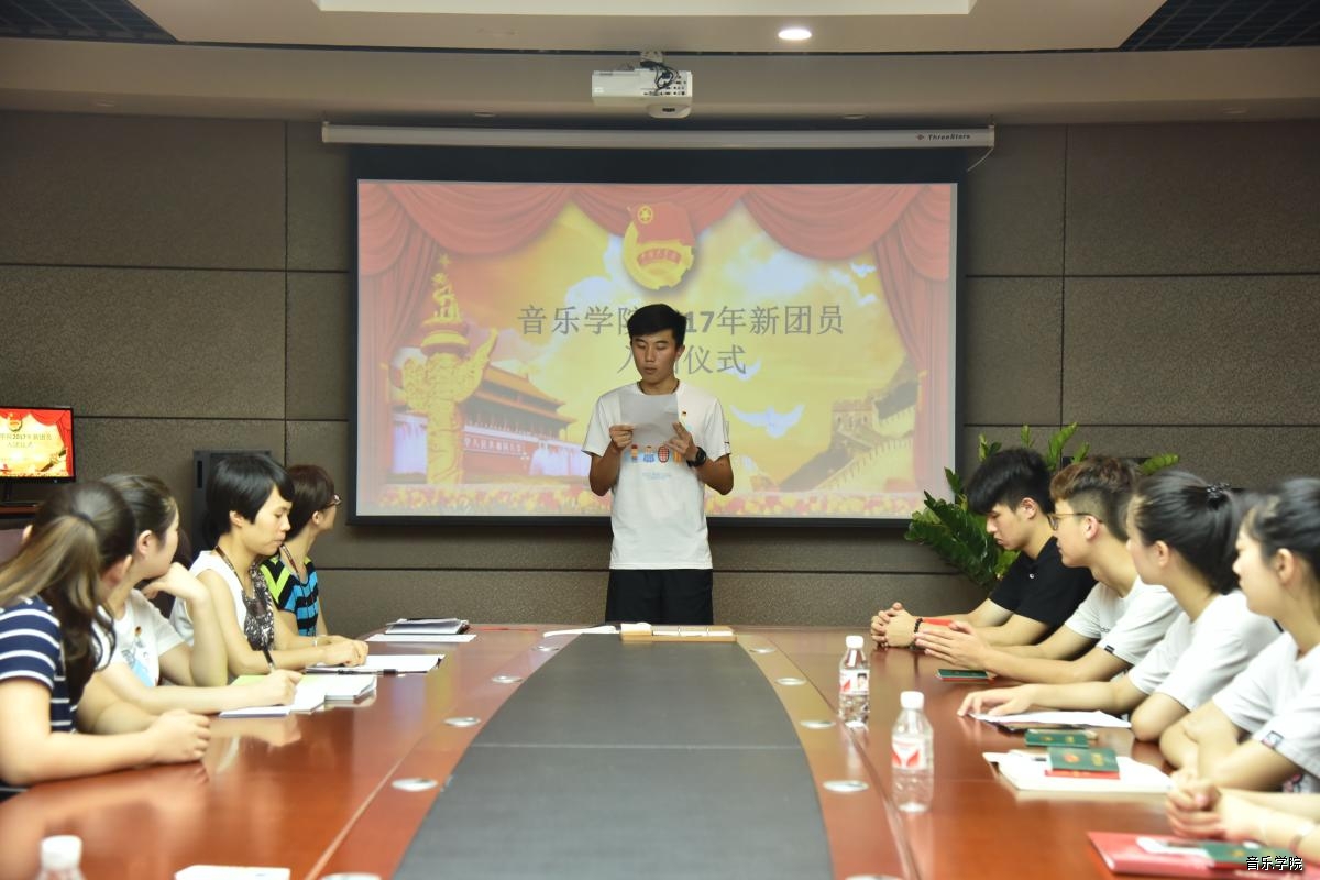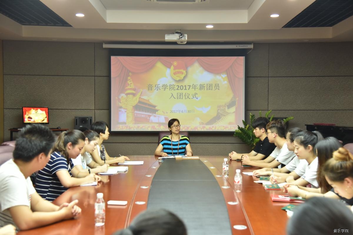 为了规范发展团员工作,保证新发展的团员质量,提升团员队伍的先进性,我院团委在完成各项发展程序的基础上,于2017年6月30日在音乐学院多功能会议室举行了2017年新团员入团仪式。党委副书记、纪委书记农花出席了活动。