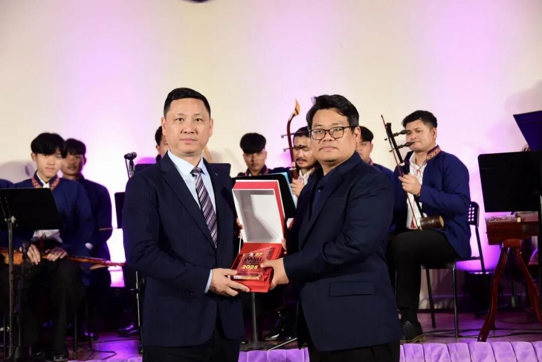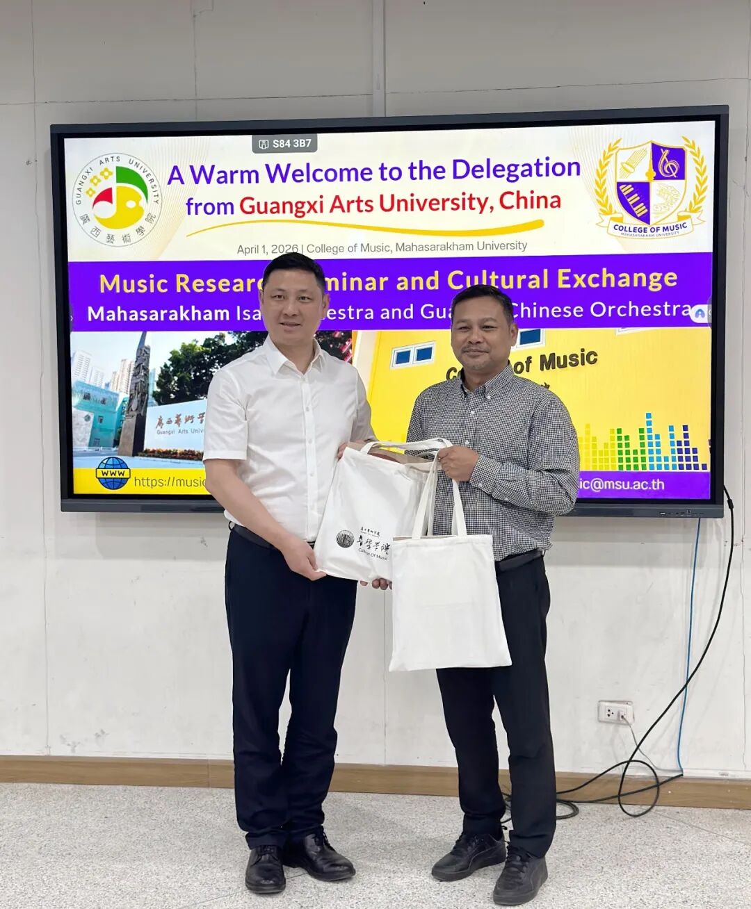 谢斌副校长与玛哈沙拉坎大学音乐学院院长西蒙・庄普拉孔互赠纪念品