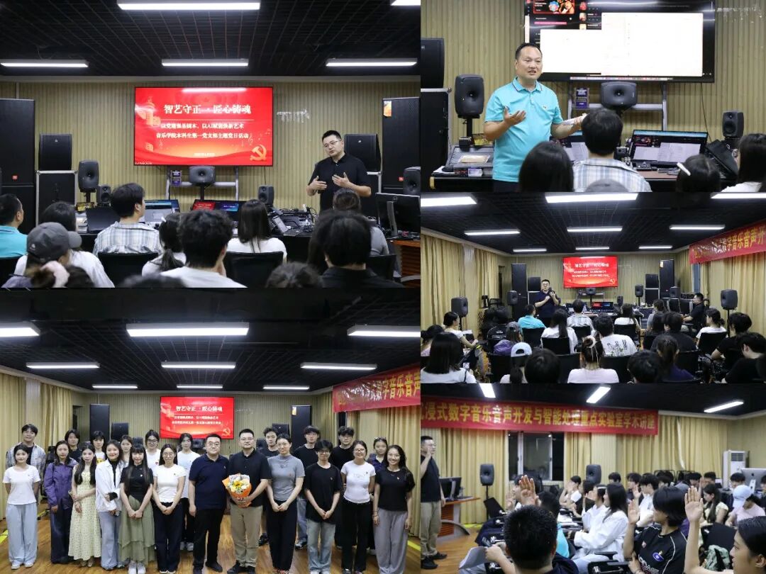 4月8日晚,音乐学院本科生第一党支部在学校沉浸式智能音频开发与处理重点实验室举办“智艺守正 匠心铸魂”——以AI赋能党建,引领网络文明新风尚主题党日活动。活动紧扣AI时代艺术发展与党员责任,旨在将组织优势转化为专业创新动力,引导师生在技术变革中坚守“正”的立场,把牢艺术的人民导向,确保专业发展服务于社会主义文化建设。学院党委副书记、纪委书记张灿出席,录音艺术系主任华伟副教授作专题授课,支部书记刘洋主持,支部党员、积极分子等学生代表参加活动。