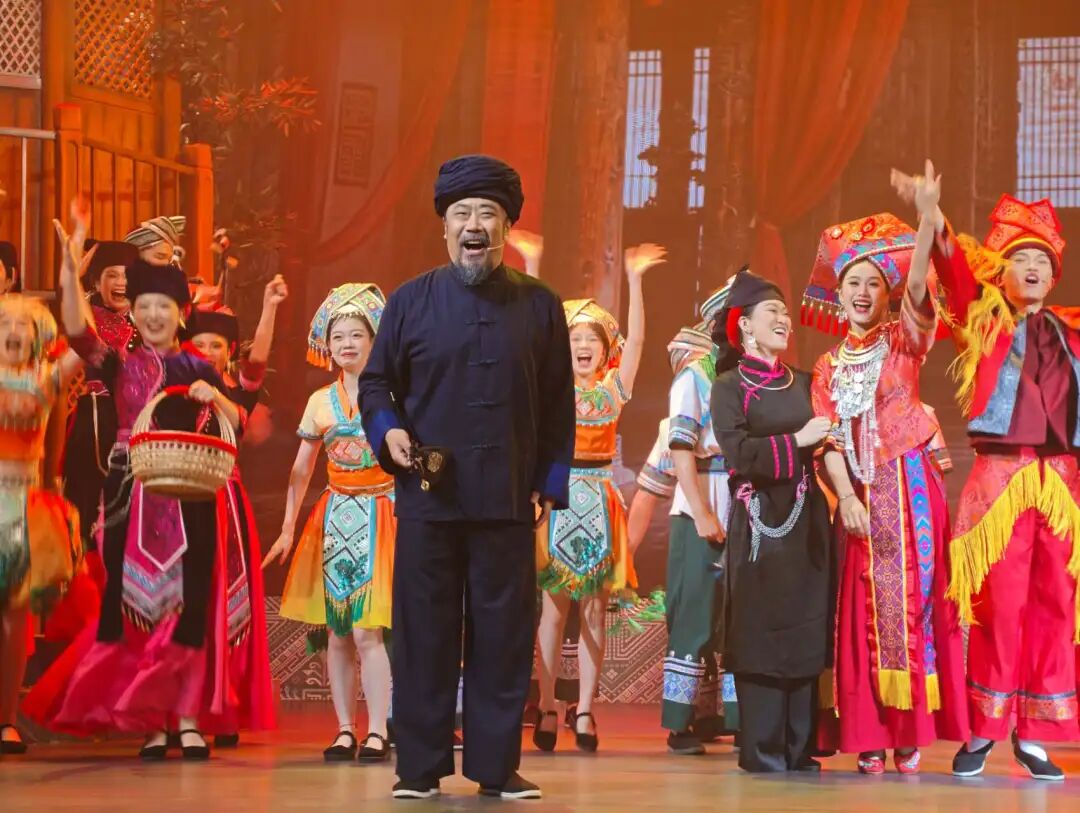 复演现场,主创团队在首演基础上,紧扣观众反馈与专业建议,对剧情节奏、表演细节、舞台调度进行全方位优化升级。剧情脉络更显流畅紧凑,天琴弹唱、壮歌对唱、壮族婚俗等核心民族元素的融合更具层次感,12首原创唱段在婉转悠扬中更添情感张力。以“双缘琴”为线索,壮家天琴姑娘阿月与越南青年阿明因琴相遇、以琴相恋的动人故事再度展开,既保留了原汁原味的壮乡民俗底蕴,又通过细节打磨强化了中越山水相连、民族相亲、民心相通的主题内涵。演出现场氛围热烈,观众沉浸其中,掌声与喝彩声此起彼伏,充分展现出非遗艺术与舞台艺术融合的独特魅力。